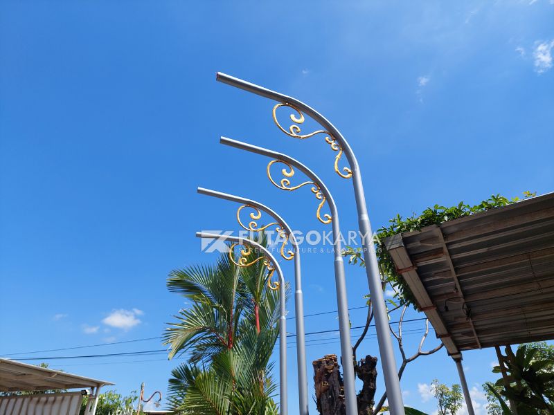 - Tiang lengkung (ornamental): digunakan untuk kebutuhan dekoratif di taman kota atau lingkungan komersial.